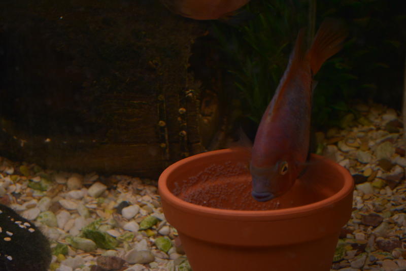 К сожалению пока не нерестился. Раньше хотя бы копал грунт, а сейчас перестал. Только гоняет самку по аквариуму и все...