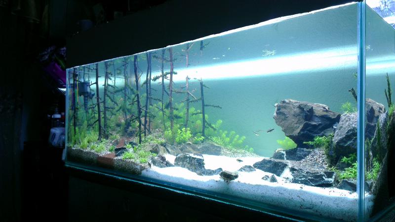 подпишусь,интересно понаблюдать за развитием акваскейпа. Хорошая идея повторить вид леса.Мне очень утро в лесу напомнило когда мутно было в аквариуме,как будто туман.