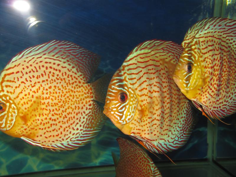 В начале прошлого года поставил в зале аквариум с дисками, что-то типа биотопника. Поскольку у кого то одного купить интересующий меня набор пород не представлялось возможности, пошел на определенный риск и собрал рыбу со всей страны можно сказать.