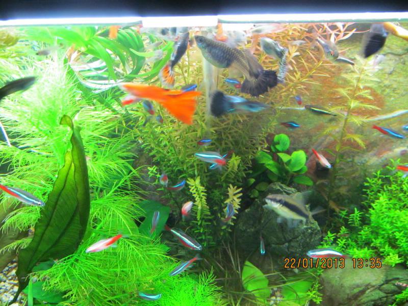 оборотень, какой красивенный аквариум))) Особенно синие гуппи! У меня тоже есть такая мечта, но я пока еще не знаю где их купить. Пока что наслаждаюсь Московскими красными)) А растения у вас очееень разрослись в сравнении с первым фото.