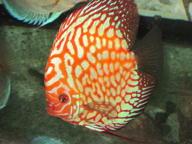 Игорь, рыбы с названием Red рigeоn blood у меня нет, но вот Super fine сheckerboard pigeon cross - S, которую показывал Азовдискус (приобреталась тут - http://onlydiscus.com.ua/img/SH_OD.jpg) выглядит действительно хорошо (свет не включал, разведение собственное).