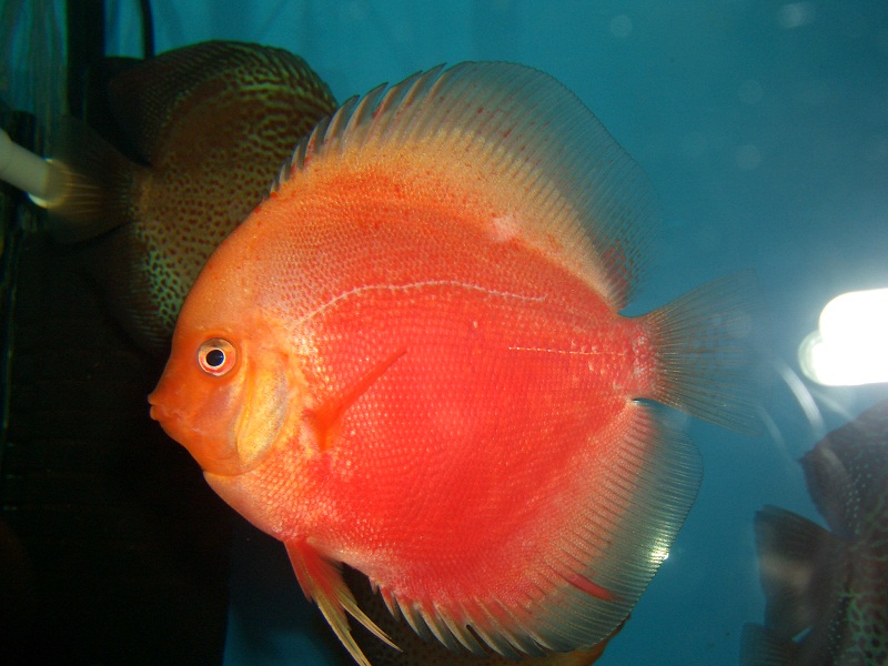 Игорь, рыбы с названием Red рigeоn blood у меня нет, но вот Super fine сheckerboard pigeon cross - S, которую показывал Азовдискус (приобреталась тут - http://onlydiscus.com.ua/img/SH_OD.jpg) выглядит действительно хорошо (свет не включал, разведение собственное).