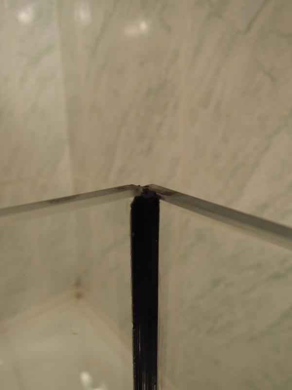 Качество изделия проверял дома: углы прямые, размерам соответствует, наружный торец стекла шлифованный (или это такое "качество" полировки); боковые стенки выше фронтальных на 1,5 мм (может так надо); внутренние швы ровные, но со стороны дна кое-где силиконовые сопли и пробелы (похоже сильно спешили).