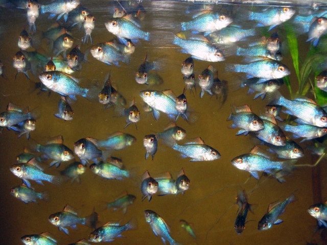 например, неоны, кардиналы, пылающие тетры; мелкие данио, барбусы, представители рода