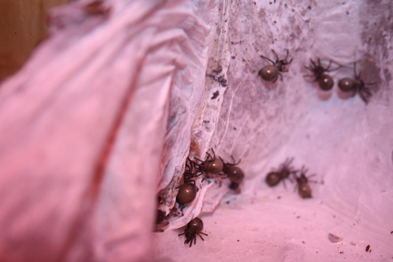 С 3его февраля нимфы начали вылезать из кокона. По окраске они уже напоминали паучат.