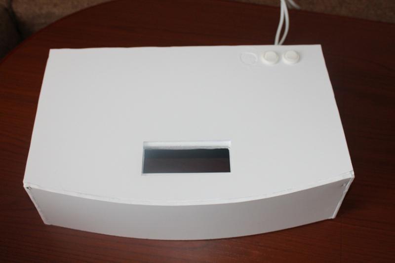 3. Склеил части и между верхней пластиной сделал пространство на 2 см и склеил часть нижнюю, куда спрятал все провода и подключение выключателя и куда собственно и вылез самонарез от крепления освещения).