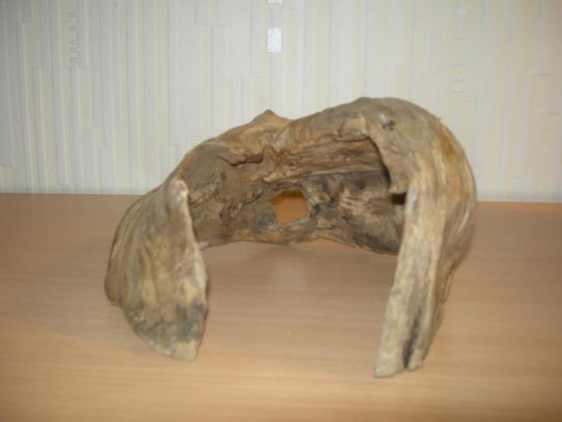 ...с виду ничего особенного но можно её спрятать в растениях.либо обмотать мхом.так как фишка коряги,в сквозном дупле(диаметром с одной стороны 3,5 см,с другой 5см)