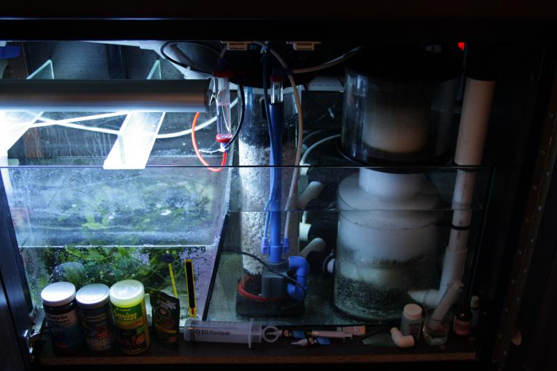 За остані дві доби параметри води потрохи вирівнюються,дозую в акву соду, кальцій падае,підняв потужність світильника до 95% з метою скорішого споживання кальцію СПСами,КН росте.Коли параметри вирівняються буду підстроювати під акву КР,і тоді почнуться забавки по підбору кількості газу та води.