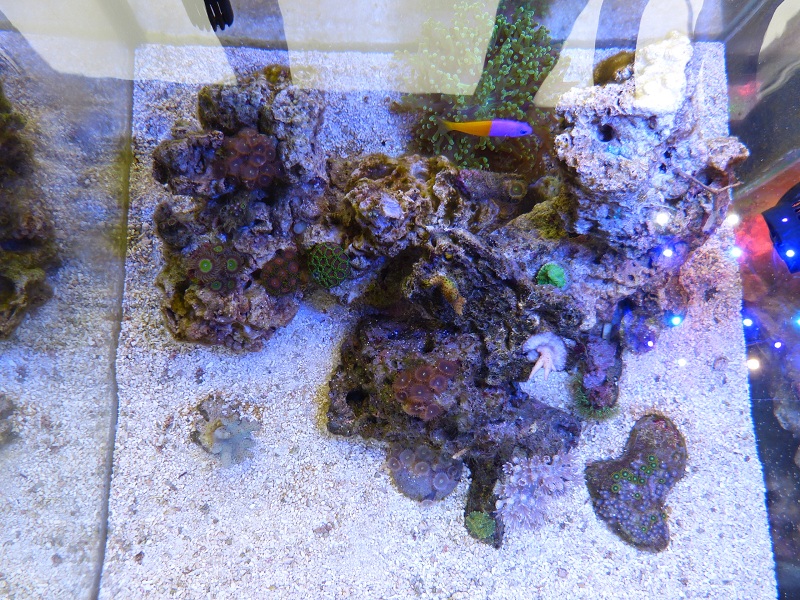 сделал тесты нитрат 0 , покормил пока сухим зоопланктоном нитраты не изменились но Лобофитум через сутки после кормежки начал отходить, сбросил с себя глянцевый налет на фото