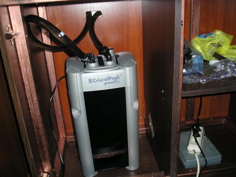 В планах был еще и самодельный внешник. Но, увы, подсчеты стоимости на комплектующее + некие факторы переубедили меня на покупку JBL. Фильтр достаточно мощный, немного шумноватый (банка в спальне). Если кому-то интересно, могу "гул" внешника записать на видео. Пока, мне он нравится. Считаю его отличной альтернативой необоснованно дорогущих Eheim'ов. Да, многие могут не согласится, но это мое сугубо личное мнение. Хотя, цена на него могла бы быть и меньше. Длинна шланга, честно говоря, маловата. На мои 1300 еле хватило(видно на фото).