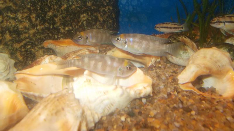 Не знаю, почему я когда-то даже не включил эту рыбу в список желаемых... Она настолько не распространена в наших аквариумах, что я про нее как-то забыл ! А напрасно ! Эта рыба достойна самого пристального внимания. Недавно я стал счастливым обладателем 5-ти молодых особей Lamprologus Сalliurus, предположительно 2 самца и 3 самки (морфа пока не определена). На первый взгляд эта рыба очень похожа на Lamprologus Brevis, но отличается от данного вида прежде всего размерами, наиболее удлененными грудными плавниками и формой хвостового плавника, иногда с длинной "косиц" не меньше, чем у принцесс ! Из особенностей поведения сразу могу отметить то, что этот лампролог наиболее пуглив из всех, которых я встречал. Может со временем они заявят о своих правах на территорию и будут более смелыми, но пока при приближении к аквариуму сразу же прячутся в рапаны. Но мне удалось как-то сделать несколько фото:
