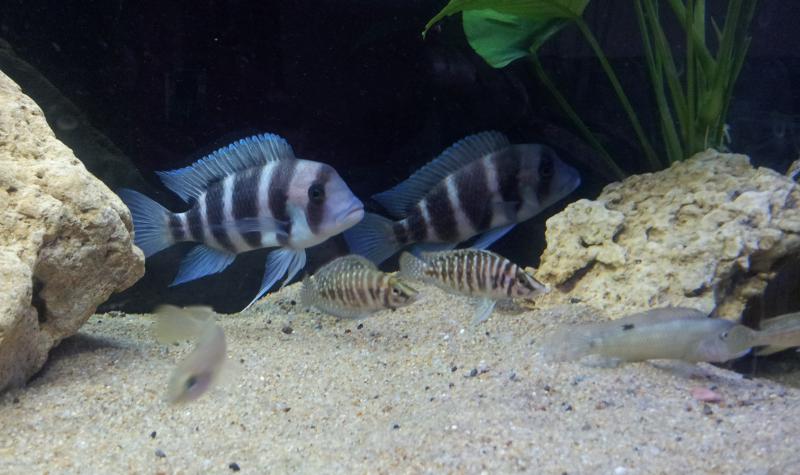 немножко оживлю рыбу..подсадил в большой аквариум Камакондочек...сначала началось знакомство....я немного нервничал....вроде покормил в одном углу и запустил их в другом....но все рыбы начали подплывать и вроде проявлять агрессию..но самец показал что его обидеть сложно....все начали как говорится накрывать поляну...самец Голда плюнул им еду которую недавно съел...так и подружились...теперь вся банда в одной стороне аквариума кружится....там где стоят фильтра тишина....