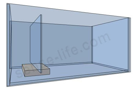 На фото показано, что банка разделена перегородкой, не доходящей до дна, так же внизу вставлена губка ( служит одновременно и барьером для мальков, и дополнительным фильтром). Я брал обыкновенные мочалки для мытья посуды, только обрезал жесткую сторону ( терку ) и уменьшал ширину ( делал узкую полоску) таким образом, чтобы она не выходила за пределы границ перегородки больше 1,5- 2 см в каждую сторону, не мешалась и не торчала сильно. Губка должна быть проложена таким образом, чтобы не было мельчайших щелей, не смог проплыть малек ( когда поплывет) из одной части банки в другую, так как его в итоге засосет в помпу. Последствия печальны, проверено опытом...  Фото банки взято из интернета. Разделение банки немного не так как на фото, примерно: первая часть, меньшая- 35- 40% и вторая, большая- 60- 65%. Верх перегородки должен быть ниже по уровню, чем края банки ( у меня ниже примерно на 5 см). Высота перегородки должна быть одинаковой по уровню с конусом или чуть выше, вода должна покрывать икру с запасом. Соответственно легко просчитать высоту самой банки ( если кому- то потребуются сами размеры, как я делал, пишите в личку, все расскажу)  .