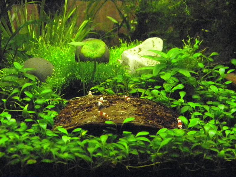 Стерилизатора нет. Затемнение не помогло. Шарик (1.5 литра) четыре дня, как запущен.  Пару улиток, пару креветок, лилиопсис, фисиденс,ситняг, гидрокотила трипартита. Что еще надо для щастья?
