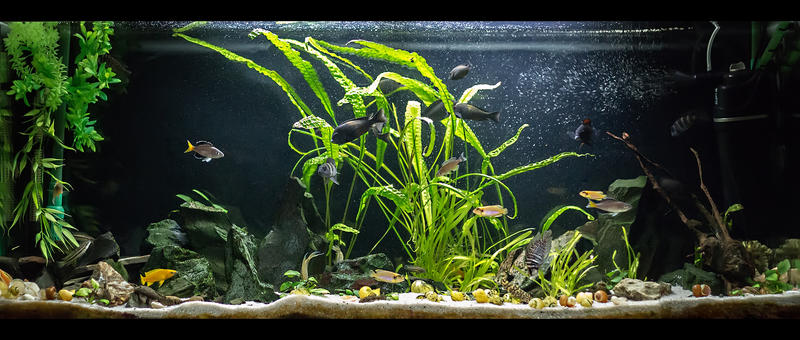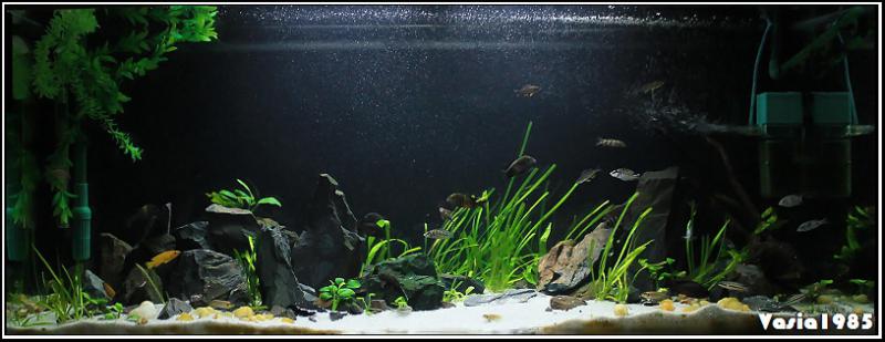 З мешканців то на той момент у мене були американські цихліди.Але через великі розміри,характер та замалий обєм акваріума довелось попрощанися з ними.