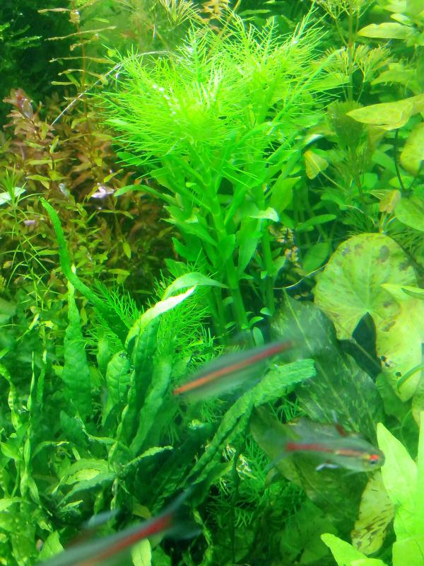 Привожу наглядный пример(фото зделал только что) гигрофилы бальзамики.Переход в водную форму у нее долгий..наверное самый долгий из всех гигрофил.Примерно прошло 2 недели после посадки горшка воздушки.По фото видно воздушные листья и новые,рассеченные.При этом обратите внимание,что старые листья сохраняют свой цвет и форму.Хотя аквариум и с косяками..но наличие питательных веществ в воде сохраняет долго и эмерсные листья.