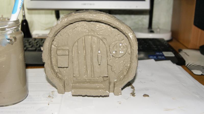 Теперь поставил домик на окно, пусть подсыхает. По мере высыхания цемента периодически его смачиваю при помощи воды.