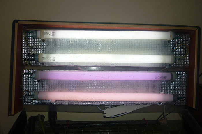 первый аквариум 55смх26смх40см (тот что с крышкой и лампами 4х15)