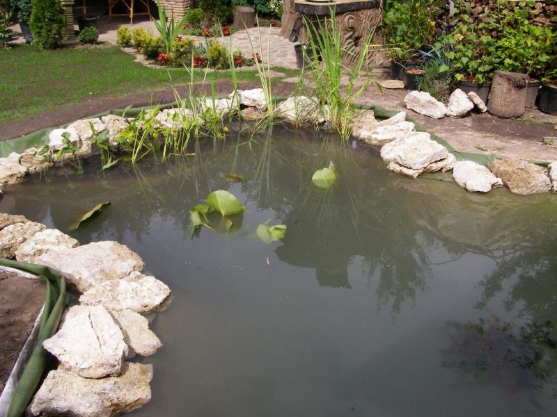 Да и ещё выбор камня я бы сказал сомнительный, карбонатноя жесткость которая в скором времени будет зашкаливать в этом пруду и может очень плохо сказаться на оборудовании в виде карбонатных отложений. С растениями и рыбой всё то-же не однозначно.