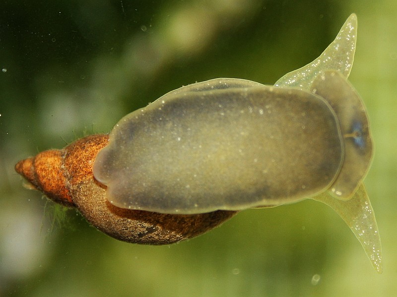 Большой прудовик (точность вида не гарантирую) уничтожает траву быстро. А ушковидный прудовик растительность не портил, да и смотрелся замечательно.