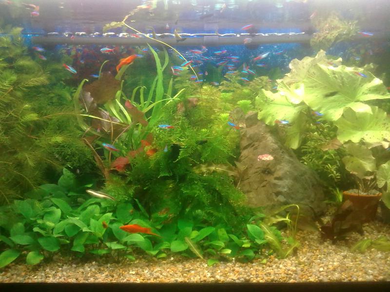 Аквариум 200л.Лампы Hagen 30W 2шт. около 2х лет. Одна белая,помоему аква гло, вторая розоватая,надписи стерты точно не помню.Световой день 12ч.Подмена воды 30% раз в неделю водопровод отстояная сутки.Ротала и хемиантус растет очень плохо.Анубиас приходиться постоянно стричь,покрывается черными точками.Роголистник прет,мох тоже растет нормально. лимнофила бывает какой-то куст бросает отростки а макушка останавливает рост.На ней заметен небольшой коричневый налет.Предпочтение отдаю растеним больше чем рыбам.С благодарностью приму рекомендации спецов по содержанию травника.