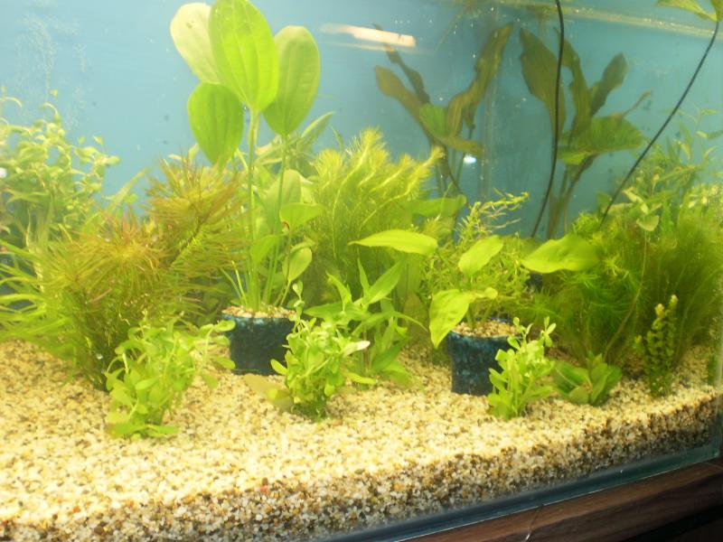 Внёс монорасстворы нитрата и фосфата расчитав на 10 мг/л по нитрату и 1мг/л по фосфату.Также микро на ОЭДФ с солями РЗЭ на 0.1 по железу,СО2 из баллона 1 пуз. в сек.На данный момент картина такая как на фотографиях внизу. Растения воспряли,стали расправляться,появились зачатки новых листиков у эхинодорусов,верхушки некоторых длинностебельных растений начали принимать розовый оттенок.Через час после подачи СО2,на растениях появились пузырьки кислорода. Скрытый текст