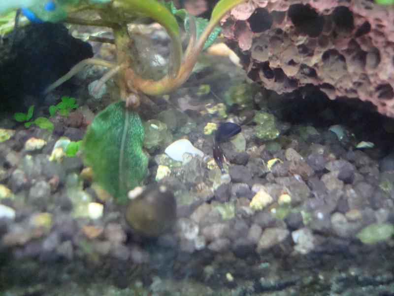 Кардинальчиков оказалось больше,чем я думала-видимо был еще один "нерест" раньше,т.к.четко видно,что креветята разного размера.Еще одна самка "на сносях".
