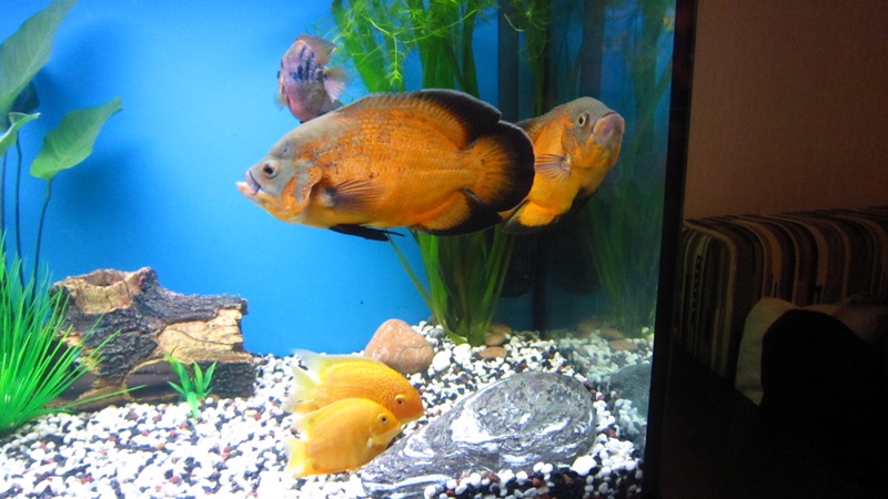 да и жильцы подросли плюс появились два тигренка(откармливал их в другой баночке больше месяца)раньше жили со скаляриями