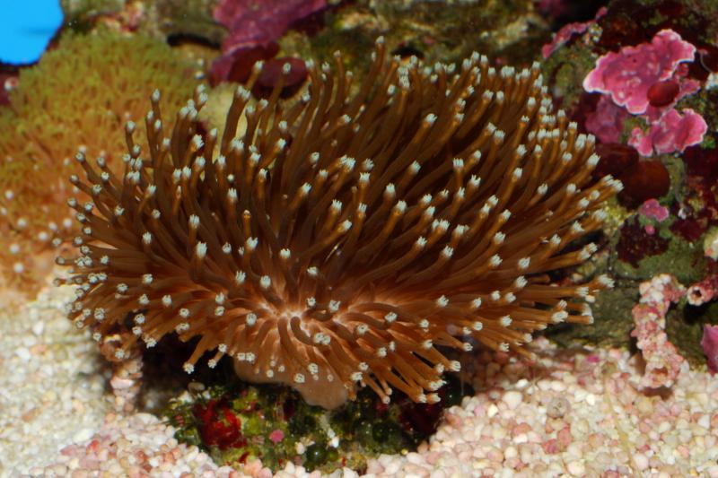 В аквариуме прекрасно себя чувствовали различные грибочки, саркофитоны, палитои, фотосинтезирующие горгонарии и ещё что-то из мягких. Капризничали только зоантусы. Из твёрдых там весьма неплохо жили эуфилии и кауластреи. Подозреваю, что список живности, которая будет себя хорошо чувствовать в подобных условиях далеко не полон.