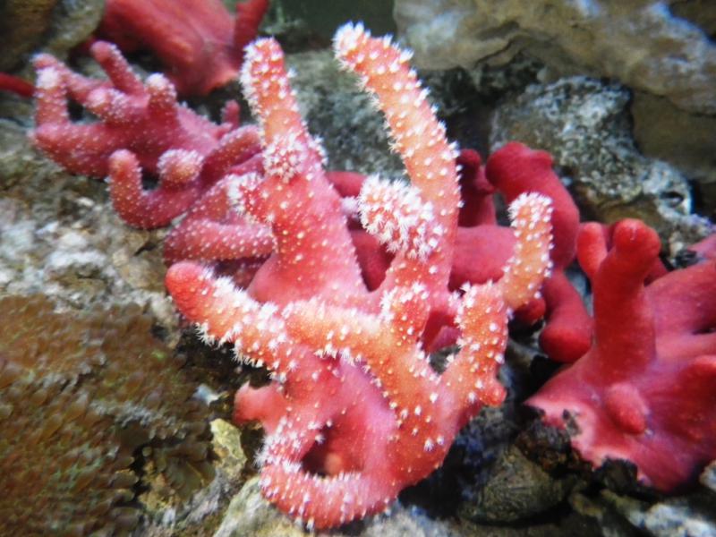 В наличии большой ассортимент разных кораллов и морской рыбы.