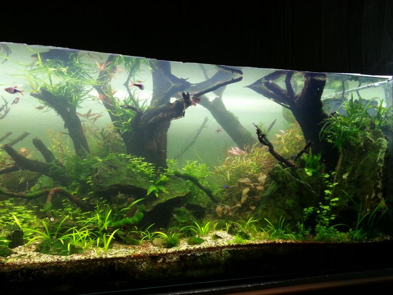 Главная изюминка этого скейпа будет в свисающих ветках с поверхности воды.На них будет расти больбитис или роговидный папоротник.Еще не решил.Ветки позже прицеплю.Сейчас еще не время