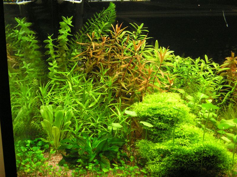 Слева сзади больбитис!Он у меня уже несколько лет, рос в разных банках!Он долгл стоит в новых условиях, но если уже прижился,то растет хорошо, но медленно. Где-то, как анубиас, один лист в неделю.Я перед посадкой в этот аквариум пообрезала все старые листья, поврежденные, ну и т.д. Так увлеклась, что куст стал в два раза меньше.  Я никогда особенно не создавала ему особенных условий. Знаю, что в мягкой воде растет лучше.