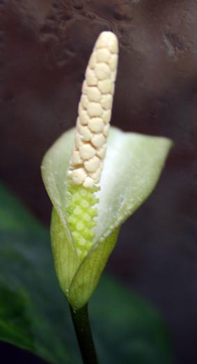 Непривычно бледная, почти белая, наружная сторона покрывала. Такой цветочек симпатично смотрится. Настораживает только нездоровая бледность листьев растения. Может быть, причина бледности листьев и покрывала одна и та же?