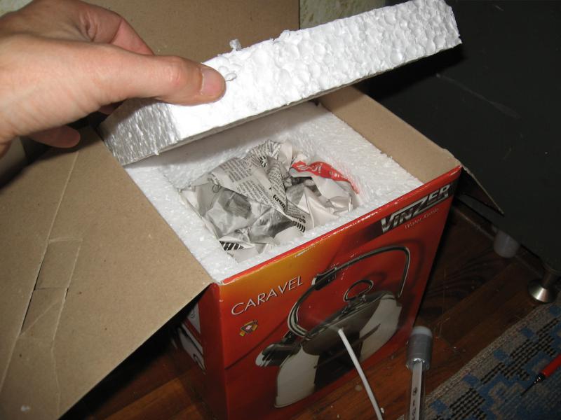 Уложена "доза" с гнездом из салфеток. Обложено всё газетами, и накрыто пенопластом.