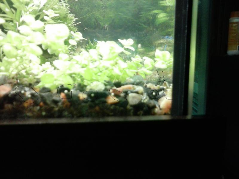 неоны , панды кинули бы икру на мох. у анциструсов крупнее икра, и обычно в укромных уголках откладывают икринка к икринке... улитки -не похоже... креветки рождают личинки креветят...
