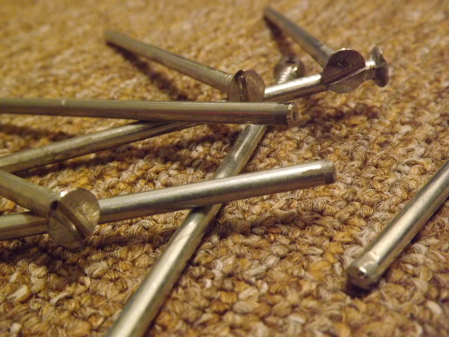 - крепление - ну что могу сказать, болты 4 х 100 (размер) оказались дефицит.. шпильки тоже не найти.. а с нашими ценами на бензин кататься и искать мне обошлось бы не дешево.. Поэтому решил импровизировать и купил гвозди 4 х 100 (размер)  после 10 минут работы с флексом + завтро еще нарежу резьбу - и будут у меня болты 4 х 100 :vo: ) ну ребята на фото всё сами увидите..