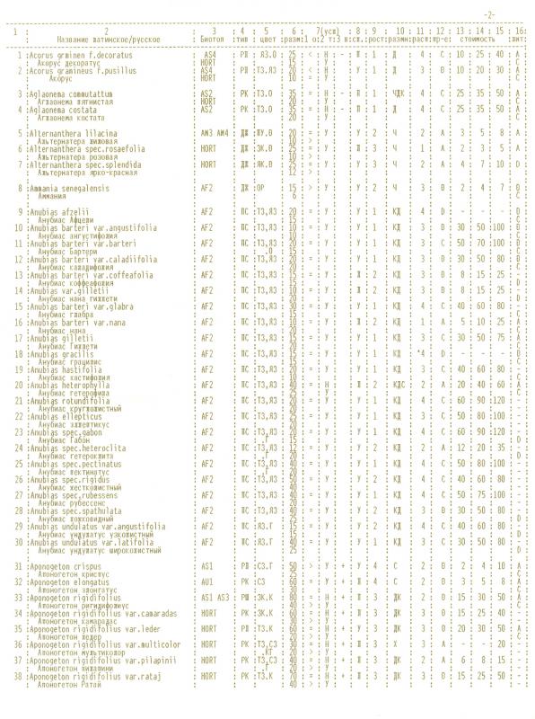 Часто задают вопросы о происхождении, размерах, условиях культивирования, особенностях того, или иного растения. В том числе и в этой теме. Олег, наткнулся в своих архивах на очень интересный (с моей точки зрения) документ - "Каталог аквариумных растений, культивируемых в СССР. (данные секции аквариумных растений по состоянию на 01.09.1991г.)". Труд, заслуживающий уважения со всех точек зрения. Трудно найти более информативный документ такого объема. Это уже история, но в какой-то степени актуален и сейчас. Может будет интересен посетителям этой темы и в чем то поможет определиться с выбором.