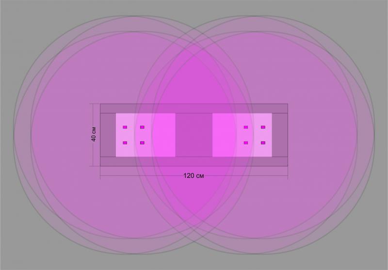 Но при этом настаиваю, на том, что проблемы с неравномерностью распределения плотности потока фотонов по площади аквариума при большом количестве светодиодов (сборок) не существует. Если у вас есть сомнения, давайте рассчитаем какую-нибудь конфигурацию светильника. Только конкретизируйте задачу: число и тип светодиодов (сборок), наличие линз, размеры аквариума, высоту столба воды и подвеса светильника.