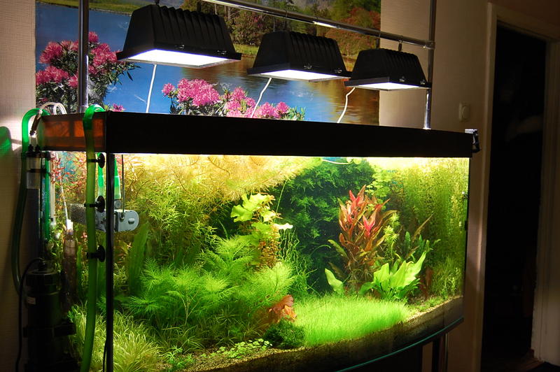 У светильников которые я использую большие отражатели, полностью освещают дно по всему периметру аквариума, не мешает в обслуживании, позволяет расположить светильники так, чтобы осветить все уголки аквариума.
