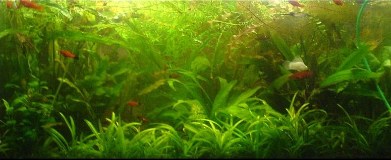 Из растений все остались кроме папоротников, слишком темно под остальными растениями. Добавлен наяс, прет как дрожжевое тесто. Прирост примерно утраивается за неделю.