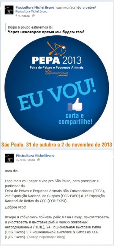Остался еще один день выставок в Берлине и Бразилии . Окончательные результаты будут ясны вечером . Фотографии победителей и учасников , появятся позже - их будут выкладывать в инете учасники выставок . На фото 1 - призы ожидающие своих номинантов в Берлине - 2013 , и соответственно на фото 2 призы в Бразилии . На фото 3 и 4 , гуппи эндлера выставляемых Stefan Karl Hetz , и отзыв Луки Roebuck - фото 5 . В Бразилии в субботу проходил конкурс бетта/петушков/ . Я знл , что петушков перевозят в пластиковых стаканчиках , но интересное фото 6 , петушков перевозят в стеклянных пузырьках и их вмещается в небольшой сумке значительное количество . На фото 7,8,9,10 рабочие моменты подготовки стенда для выставляющейся рыбы .