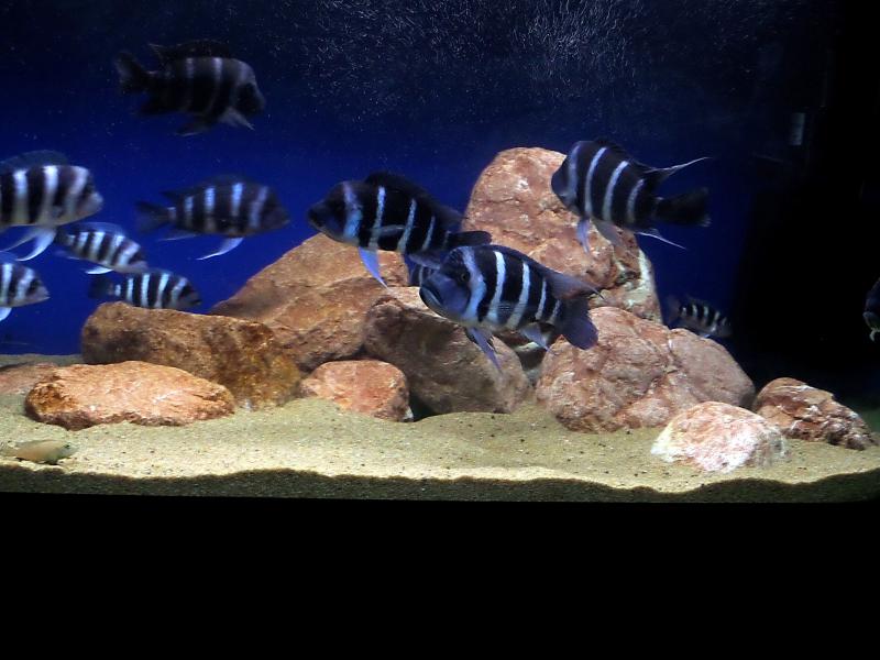 Соседство с десятком Julidochromis Regani и Altolamprologus Calvus Black Kongо нисколько не смущает ни тех, ни других. Если честно, была почти уверена, что фронтозы их "пощёлкают" в первую в первые же дни, так как с личной беседы с Олегом Кусто знала о их нраве настоящих хищников. Но жизнеспособность и интеллект юлидохромисов оказался выше, чем я предполагала. Они заняли ращелины в камнях и шныряют там как "тараканчики". Кальвусы и прятаться никуда не собираются, показывая новичкам кто в доме хозяин!  Так что, все идет своим чередом.