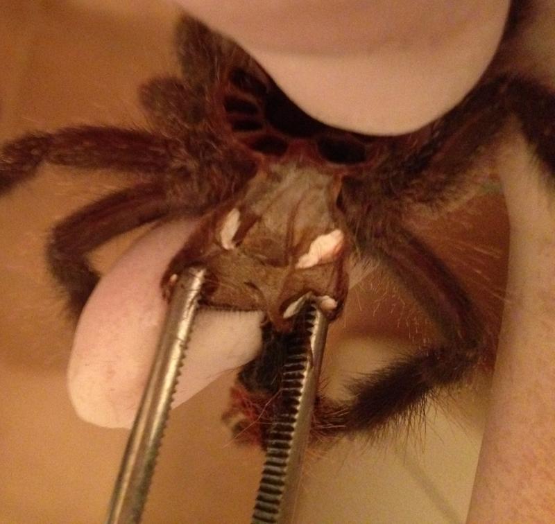 это обследование epigynal области расположенную между первими книжными легкими тарантулов. Но как это сделать?