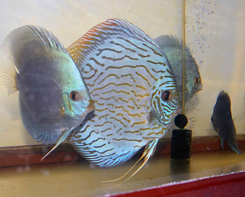 я не знаток по вариациям дискусов,но таких очень много выскакивало из под разных пар,например золотых или мальборо. знаю если смешать например красного туркиса с красным или бело красным дискусом, в помете очень большой процент таких получится. есть любители которым нравятся коричневые дискусы, вот им и продавал.видел взрослых мне не понравились.