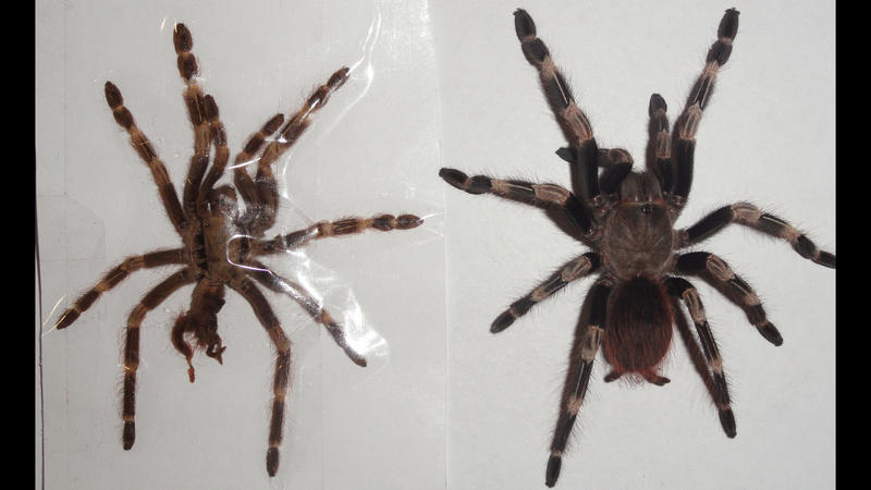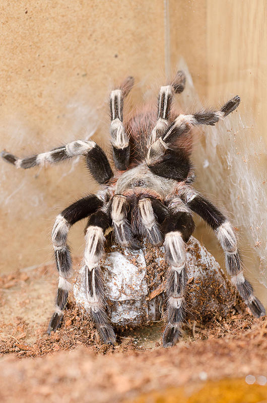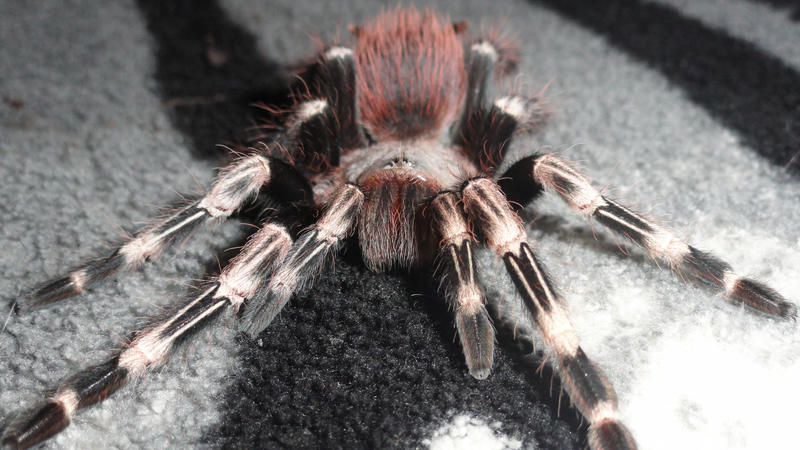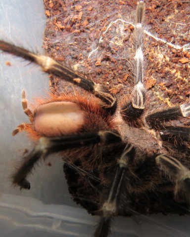 Самка, возраст примерно 5 лет. Главный любитель сбежать на волю =) Стабильно раз в пол-года исчезает из террариума, открывает двери, отодвигает баррикады, все что угодно, уже наверное наизусть знает мою комнату =))) И все равно один из любимых пауков!