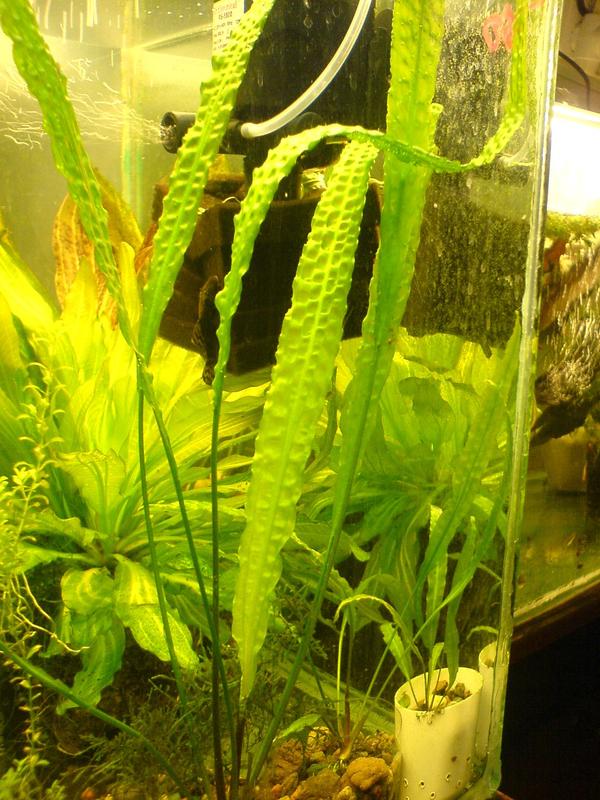 1) Апоногетон. Куст длинной около 30 см. Окрас листьев - различные оттенки зелёного и коричневого. Куст взрослый, нерестится.
