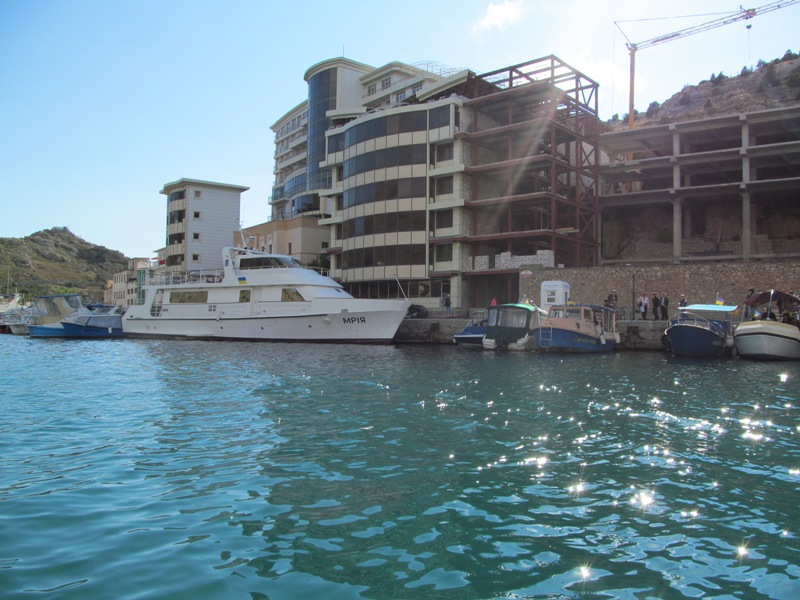 И вот Балаклава. Спустившись к бухте мы поняли, что не оригинальны в своем стремлении посетить этот город. Все стоянки были заняты и машину поставить было совершенно некуда. Но тут же нарисовался человек , который сразу проникся нашей проблемой и отчаянно жестикулируя направил нашу машину к желанной свободной площади. Как выяснилось, его интерес был в том, что бы предложить нам обзорную экскурсию по бухте. Ну как отказать человеку, который так помог со стоянкой…Маркетинг, однако…Тем более, что наши интересы совпадали.