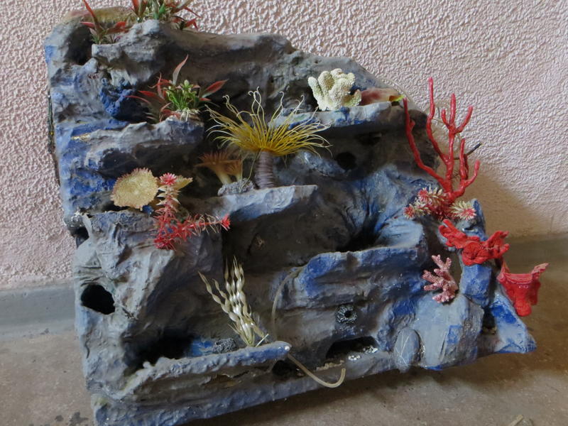 2. Фон в "псевдоморе". Кстати кораллы и половины губок тоже изготовлена мною. Задача (спрятать все коммуникации, подвести воздух и систему фильтрации)