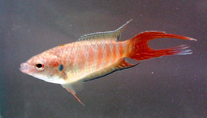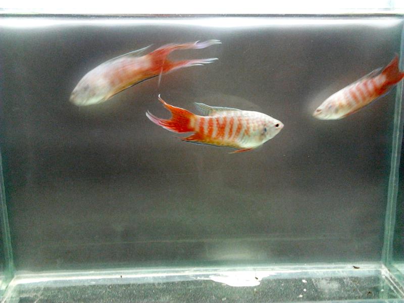 Також є мальок макропода біколор. Фото не робив по тій причині, що окрашуються відносно пізно і на даний момент не в окрасі ще. Така сама ситуація з макроподом супер ред (спеціально для цього фото батька виклав).
