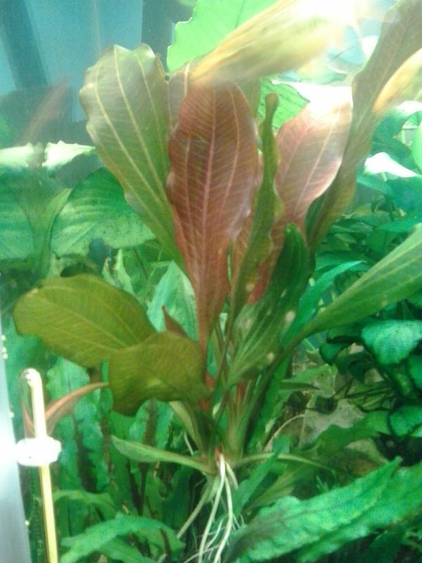 Уважаемые форумчане! Представляю Вам детку моего аквариумного патриота - Эхинодорус огни Святого Эльма (Echinodorus Sankt Elmsfeuer).